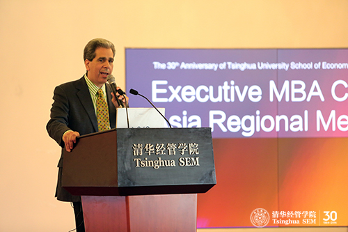 The Executive MBA Council Asia Regional Meeting was held at Tsinghua University School of Economics and Management (Tsinghua SEM) on April 15-16. It is the second time for Tsinghua SEM to host the Regional Meeting of the Executive MBA Council after ten years. The topic for this year’s meeting is “Opportunities, Challenges and Difficulties for EMBA education in Asia (China)”. Over 50 delegates from over 30 Asia EMBA programs attended the meeting. Apart from domestic business schools, some top-notch international business schools, such as Kellogg School of Management, Northwestern University, The University of Chicago Booth School of Business, the Wharton School of the University of Pennsylvania and Harvard Business School also participated in the Meeting.