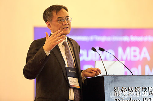 Professor QIAN Yingyi , Dean of Tsinghua SEM, delivered a keynote speech "China’s EMBA Education: Features and Innovations". Dean Qian introduced the development of China’s EMBA education over the past years and its unique features, noting that “China is a latecomer in EMBA education, but we are growing rapidly. China’s EMBA education started in 2002, with 30 universities having EMBA program across the country. The total number of EMBA students in China was only 2147 at that time.” By 2013, China already has 63 universities having EMBA program, and the annual enrolled number of EMBA students has grown up to over 8000. Till today, there are accumulated 62,157 students who have taken EMBA education in China. Even though China’s EMBA education started later than our international peers, our annual enrolment is perhaps the largest in the world. At Tsinghua SEM, we enrolled 400 EMBA students every year, which is still not the largest enrolment among China's business schools. China’s EMBA education has several unique features. Most China’s EMBA students are in their 40s. This group of students has high demand for graduate business education because most of them had no opportunities to pursue an MBA degree in their 20s. China’s EMBA education not only grow in scale over the years, but also improve very fast in quality. Out of the top 10 Global EMBA programs in the Financial Times 2013 Global EMBA Ranking, 3 programs are from mainland China, which shows that China’s EMBA education have indeed earned international recognition.
