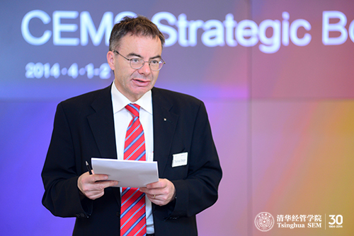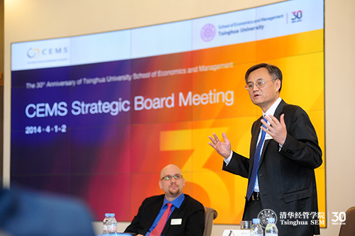 The CEMS Strategic Board Annual Meeting took place on 1-2 April 2014 at the Shunde Building of Tsinghua University School of Economics and Management (SEM), hosted by Tsinghua SEM Dean Yingyi QIAN. The event was also part of the 30th anniversary celebrations of Tsinghua SEM, the only CEMS academic member in Mainland China. Attending the event were the heads of 23 CEMS member schools, including the Head of the Department of Management at the London School of Economics and Political Science, Michael Barzelay, the Director General of the ESADE Business & Law School, Eugenia Bieto, the CEMS Chairman and the President of the University of St. Gallen, Thomas Bieger, and the Acting Dean of the Hong Kong University of Science and Technology Business School, Kalok Chan. Representatives from CEMS corporate partners also attended, including the Executive Vice President of Human Resources at KONE Group, Kerttu Tuomas, the former Senior Vice-President for Human Resources at L'Oreal and CEMS Strategic Board member, Philippe Louvet, External Advisor to McKinsey & Company, Mei Ye, as well as CEMS Executive Director, Roland Siegers, and CEMS Secretary General, Nicole de Fontaines.