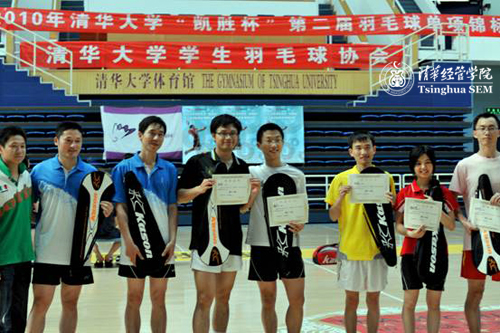More than ten members of the Tsinghua MBA badminton club (students in 2008 or 2009 classes) participated in the competition. The club, initiated in 2008, now hosts more than 150 members. It conducts training on weekly bases and regularly send members for exchanges and competitions.