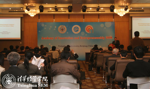 During March 27-29, 2008, the Annual Conference of the Academy of Innovation and Entrepreneurship was held at Tsinghua SEM. Co-organized by the Department of Innovation and Entrepreneurship, Research Center for Technology Innovation and the National Entrepreneurship Research Center, the conference brings together more than 100 scholars in the area of Innovation and Entrepreneurship from 17 countries and regions including the United States, Britain, Germany, France, Belgium, Netherland, Kuwait, South Korea, etc..At the opening ceremony, Associate Dean of Tsinghua SEM, Professor Yang Bin deliveredan address. Professor Garth Saloner from Stanford University, U.S. made a keynote speech at the conference. Chair of the Department of Innovation and Entrepreneurship, Professor Gao Jian presided over the opening ceremony.