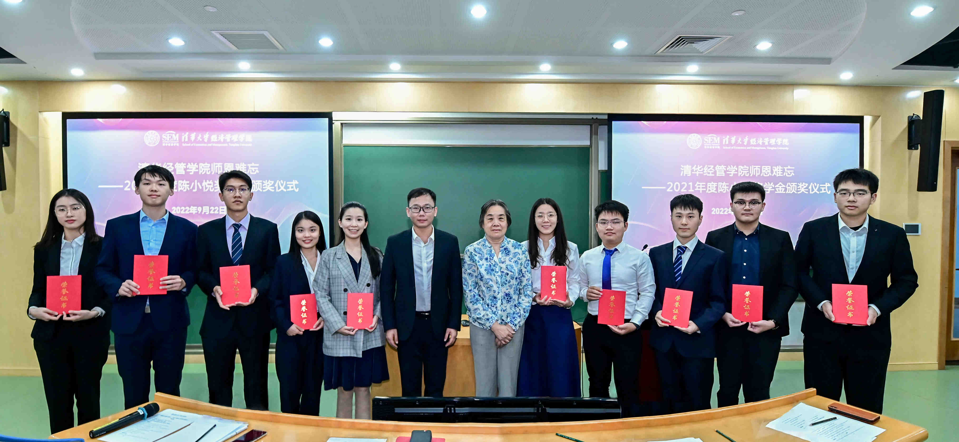 2022年9月22日,清华经管学院“师恩难忘——2021年度陈小悦奖学金颁奖仪式”举行。陈小悦教授夫人郭凤梅,女儿陈萌,陈小悦教授的学生陈武朝、方元、郭阅、黄莺、孙力强、姚凤岐、张峥嵘、朱红、朱金浦,陈小悦教授好友徐瑜青,以及学院副院长何平、党委研究生工作组组长刘庆、党委学生工作组组长孔奕淳、学生工作事务办公室主任郭朝晖等参加活动。活动由学院合作发展办公室副主任王敏主持。