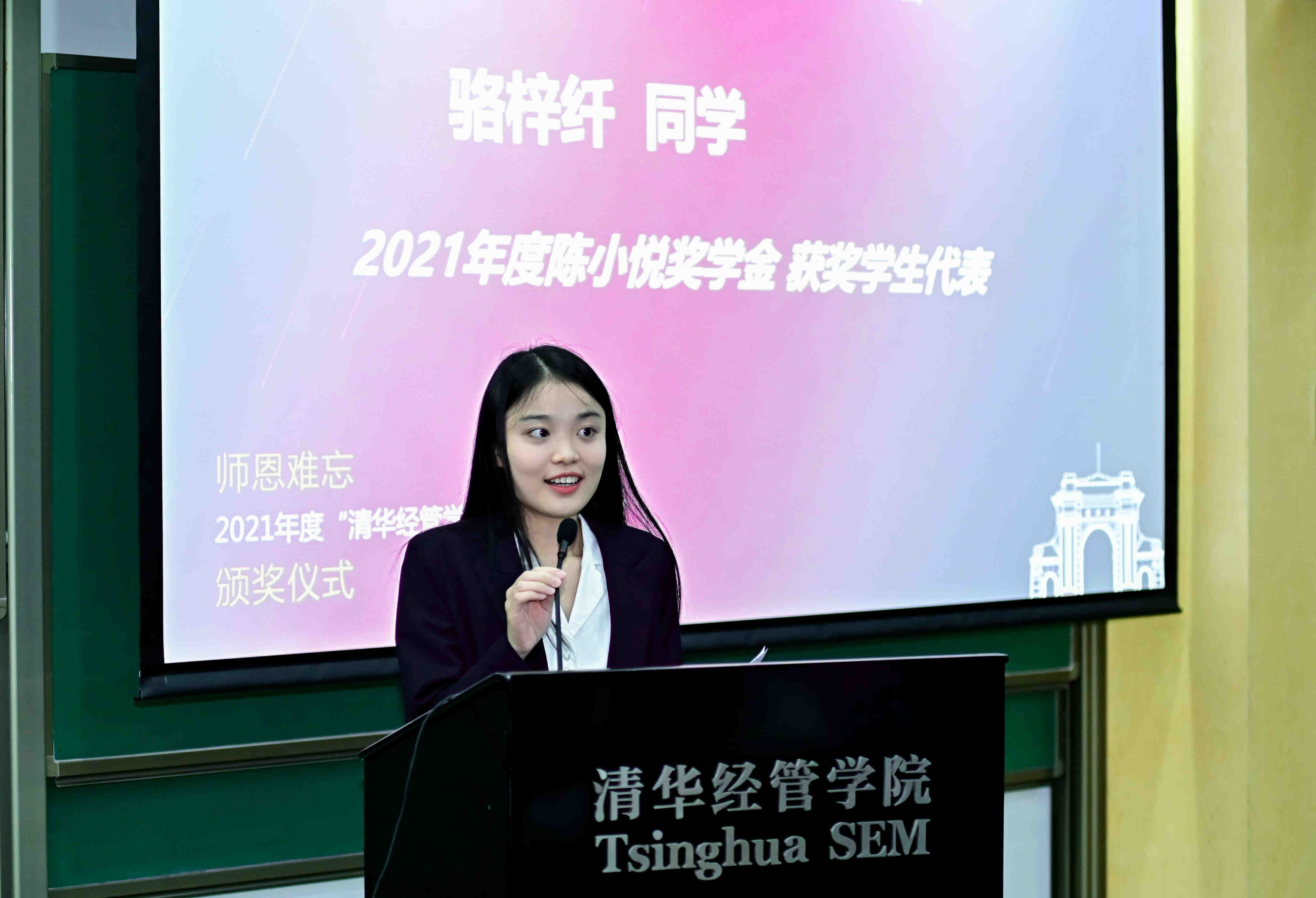 最后,学院经92骆梓纤代表获奖同学发言。骆梓纤感谢陈小悦教授、陈小悦基金委员会对大家的鼓励与期望。荣获陈小悦奖学金,不仅是对同学们学业的肯定,更是自强创新、永攀高峰的动力。陈小悦教授“立足中国,放眼世界,穷理求真,追求卓越”,无论是为学还是为人,他都在用实际行动教导着大家。未来,希望大家传承发扬陈小悦教授穷理求真的治学精神、追求卓越的人生态度,秉承前辈精神,走好人生之路。