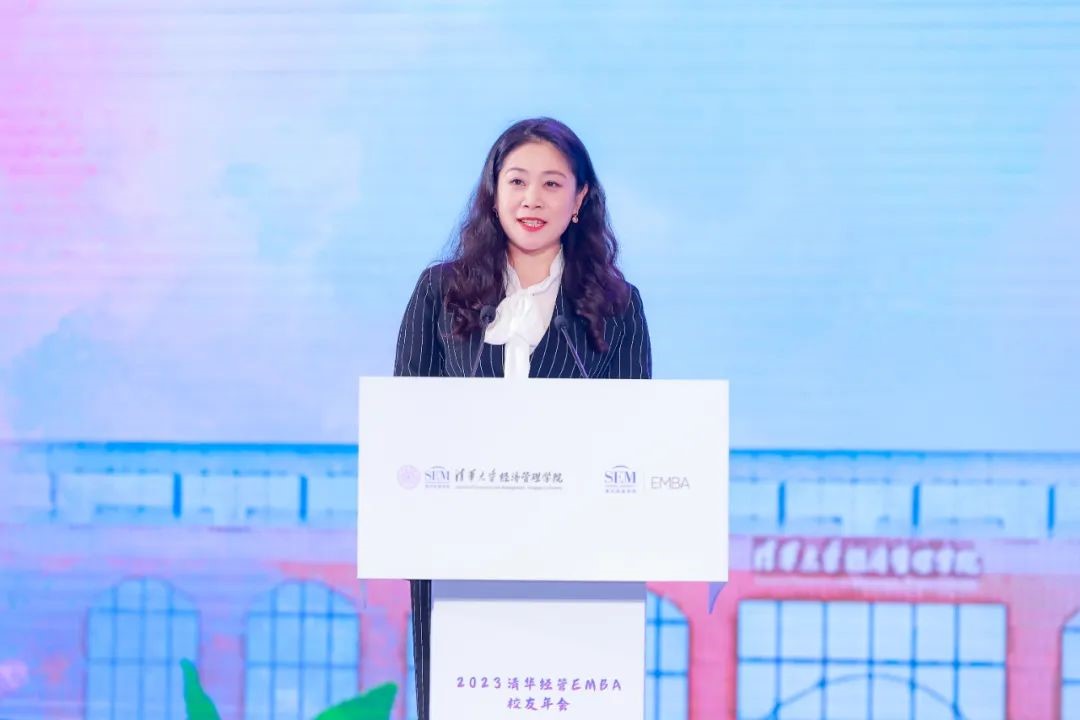 薛健作院情介绍时,从新楼启用、学生与教学、教师与研究等方向分享了学院近年来的发展与创新举措,以及清华经管EMBA过去20年的成绩。近年来,EMBA教育中心持续加大前沿科技行业的招生力度,赋能实体经济。课程体系也在不断迭代创新,开创性地打造清华大生态,打通产学研链条,助力创新科技成果转化。薛健希望大家继续心怀国之大者,为学院、企业和国家的发展创建更美好的未来。