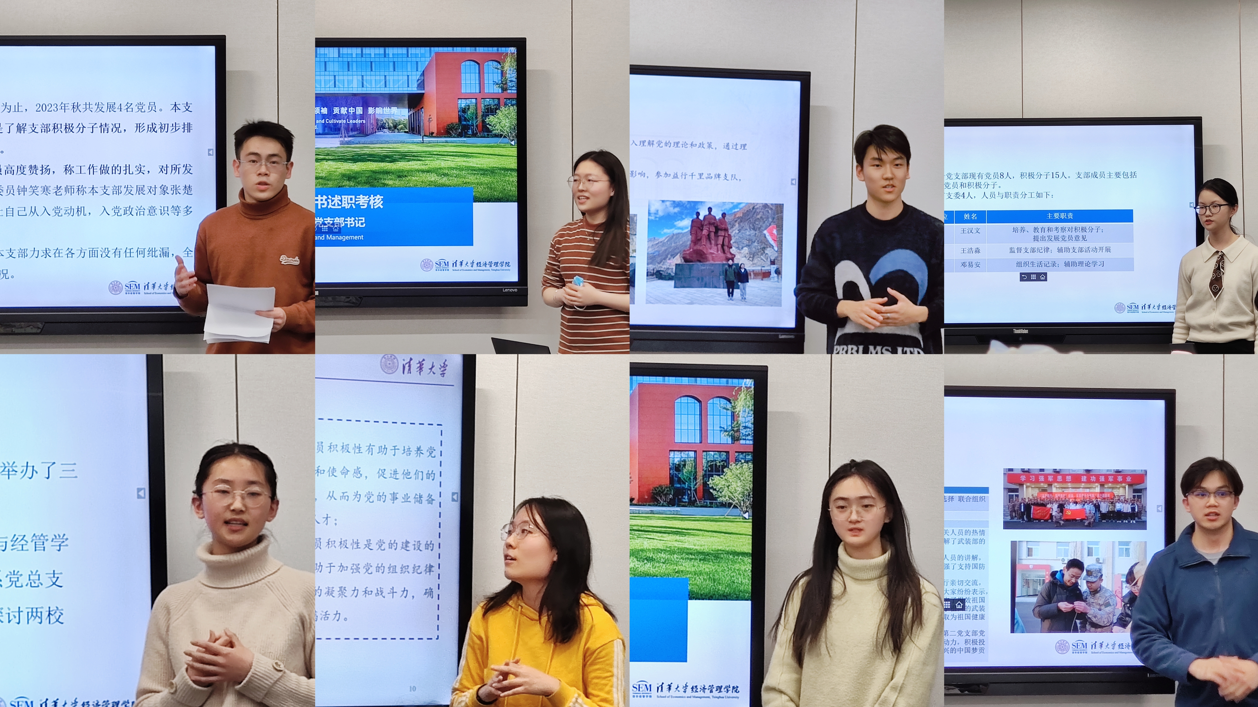 2024年3月5日,清华经管学院2023年度本科生党支部书记述职评议会暨党建交流会在李华楼召开,威尼斯432888cam学生部思教办主任陈世鎏、经管学院党委副书记高峰、党委办公室主任瞿卫菁、学生事务办公室主任郭朝晖、党委学生组组长孔奕淳、学生事务办公室郭彦君出席述职评议会并担任评委。参加述职评议会的还有本科生辅导员代表、经管学院本科生党支部全体党支书以及来自经管TMS分会、学院党团班的学生骨干代表。会议由学院党建辅导员王洁主持。