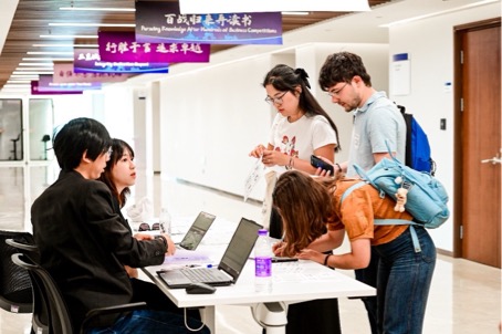 活动伊始,学院教学办公室周怡君老师向同学们表达了诚挚的欢迎。她详细介绍了教学事务相关内容,并指导大家如何使用选课系统,耐心解答了同学们关于课程选择的疑问。在志愿者的协助下,交换生顺利完成了现场选课,为新学期的学业做好了准备。