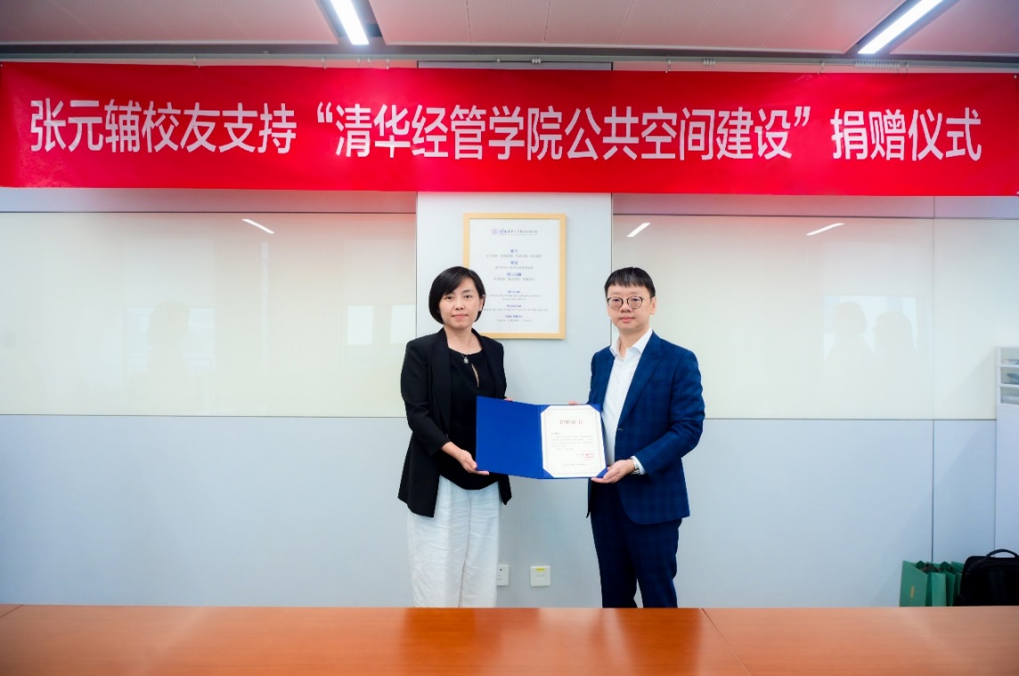 2024年9月26日,张元辅校友支持“清华经管学院公共空间建设”捐赠仪式在李华楼举行,此次捐赠用于支持李华楼公共区域的配套设施,为师生创造提供更加健全的学习、交流环境。台湾燿华电子公司副董事长、清华-INSEAD EMBA(TIEMBA)项目2018届校友张元辅,清华经管学院党委书记薛健、EMBA教育中心主任贾莉出席捐赠仪式。仪式由学院合作发展办公室副主任王敏主持。