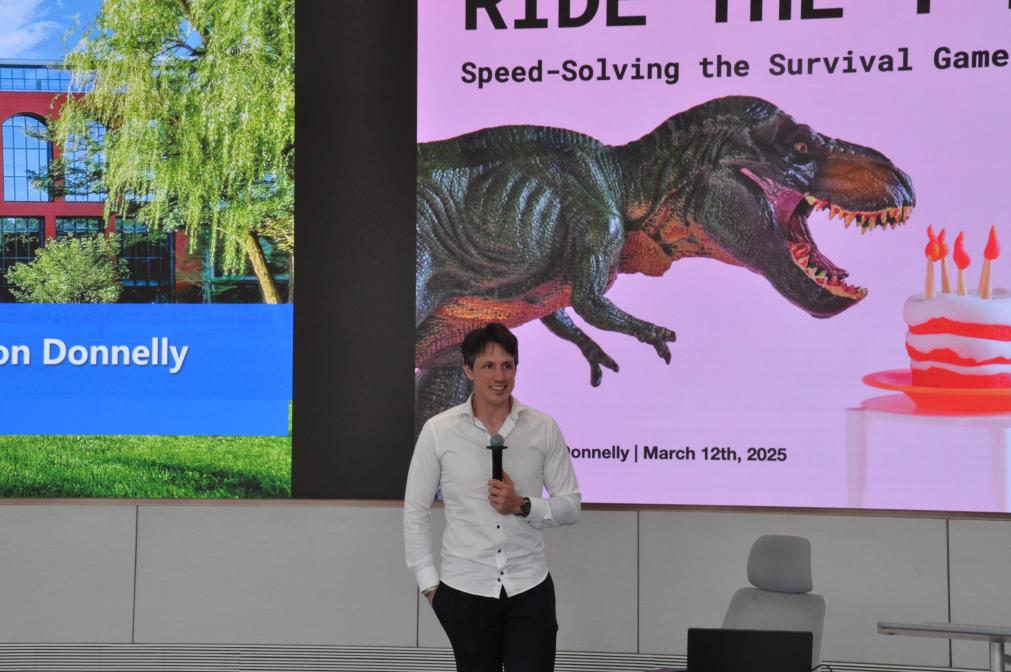 随后,布兰登·唐纳利以“AI前沿领域的创新与实践”为题发表演讲,详细解析了当前AI技术发展趋势,并结合自身在全球AI产业的丰富经验,分享了AI在智能决策、企业管理、金融科技等领域的应用逻辑。他指出,目前AI正从实验室加速渗透至实体经济,全面覆盖医疗、金融、制造、文化等多元领域。企业管理者需精准识别AI的技术优势与潜在风险,构建科学实施策略以最大化释放效能。针对AI引发的职业变革,布兰登·唐纳利强调,未来的核心竞争力在于跨领域协作与工具驾驭能力。他指出,“我们生活在一个充满答案的世界里,真正的关键在于提出更好的问题。”他以谷歌园恐龙雕塑为喻,呼吁“与其害怕恐龙,不如成为驾驭恐龙的人”,要通过持续学习与能力迭代,在技术浪潮中保持领先。