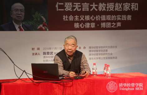 2016年11月11日,清华经管学院举办“仁爱无言大教授赵家和”——学习赵家和教授主题教育讲座,讲座由清华经管学院原党委书记陈章武教授主讲,现场吸引了全校近四百名同学参加。
