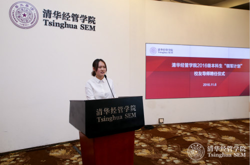 清华经管学院团委校友组组长邓桦(经2015)在清华经管学院2016级本科生“领军计划”校友导师聘任仪式上发言