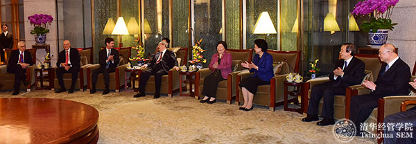 清华经管学院顾问委员会主席、Breyer Capital创始人兼首席执行官吉姆·布雷耶(Jim Breyer)在发言中说,过去两天经管学院举办了很多好的活动,顾问委员们看到了学院师生的创新和活力,收获很多。今年首次参会的通用汽车公司首席执行官玛丽·博拉(Mary Barra)在发言中说,她非常高兴能够有机会首次来参加顾问委员会的会议。让她印象深刻的是清华经管学院的实力,生源好、师资强、教学项目好,学院也有着良好的声誉。她相信清华经管学院一定能够善于抓住自己面前的机会,保持自己领先的地位。哈佛商学院院长尼廷·诺里亚(Nitin Nohria)在发言中说,在哈佛商学院和清华经管学院的合作中,一开始清华经管学院使用哈佛商学院的案例,现在哈佛商学院也在用清华经管学院写的案例,并且通过哈佛商学院把清华经管学院写的案例介绍给其他的商学院。特别值得高兴的是,现在这些案例当中有一些是新公司的案例,比如说基于互联网的企业、新兴技术公司,通过这些案例的学习,大家也能够了解到在中国发生的新鲜事情。今年的新任委员、纽约大学斯特恩商学院教授、2001年诺贝尔经济学奖获得者迈克尔·斯宾塞(A. Michael Spence)在发言中提到,“昨天下午我有机会和学院经济、金融和会计领域的青年老师进行了一次座谈,给我留下深刻印象的不仅是他们在各自的领域良好的专业性,还有他们对这所大学和国家所给予的机遇和未来的发展感到非常兴奋,我觉得这一点对于清华和中国的未来的来说都是好的预示。”