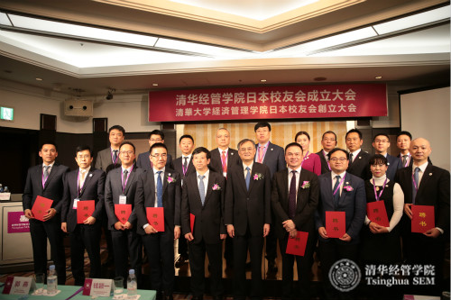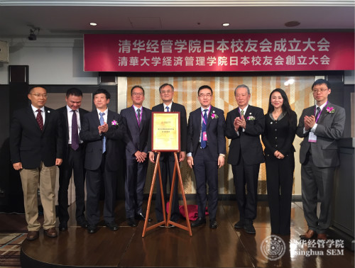2016年10月25日,清华经管学院日本校友会成立大会在日本东京举行。清华经管学院院长钱颖一教授,中国驻日本大使馆公使郭燕女士,清华经管学院顾问委员会委员、Quantum Leaps公司创始人兼首席执行官、索尼集团前董事长兼首席执行官出井伸之先生,日本中华总商会副会长徐志敏先生,清华经管学院党委副书记焦捷教授等出席大会。大会由清华经管EMBA媒体班2012级校友张晓琳和高管教育校友岩崎元地共同主持。