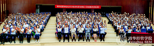 钱颖一院长代表学院向新生赠书。他在赠书仪式上表示:“《朱镕基讲话实录》是有关中国改革开放的重要文献,更是清华经管学院的宝贵财富。五年前《朱镕基讲话实录》出版之际,朱镕基老院长向清华经管学院师生赠送了500套,学院师生为之振奋。今天我们向学院2016级新生赠送《朱镕基讲话实录》,就是希望新生们在进入清华经管学院之时起,就能够认真学习和领会我们学院老院长的经济管理思想和实践,从而深入理解中国经济改革发展的历程,更好地结合国情学习经济管理知识,这对提高学院教学水平具有重要意义。”