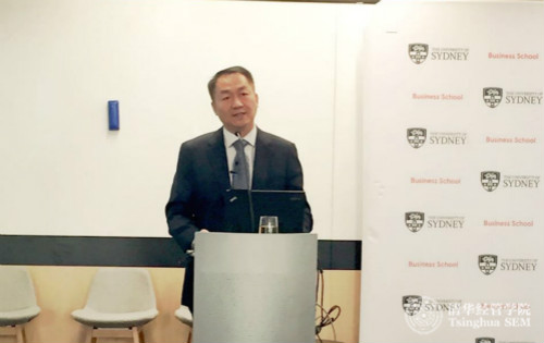 清华经管学院党委书记、创新创业与战略系教授高建在第九届创新与创业国际学术会议上发言