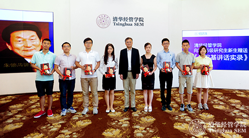 清华经管学院钱颖一院长在2016级研究生入学导向上向2016级硕士研究生赠送《朱镕基讲话实录》