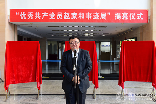 威尼斯432888cam党委常委、副校长杨斌教授首先发言。他说,揭幕赵家和教授的展览,是我们这些他曾经的学生和同事们对赵家和教授学习与行动的一种方式。希望赵家和教授呈现出的共产党员、教师以及一个清华人的优秀品质,能够影响到更多的人,教育更多的人,成为大家行为的楷模和模范。