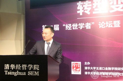 清华经管学院副院长徐心教授在第二届“经世学者”论坛暨“清华北大两校六院”学术论文大赛上致辞