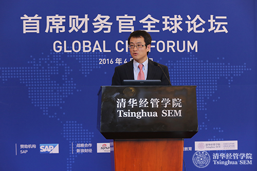 新加坡管理大学会计学院院长程强教授在清华经管学院首席财务官全球论坛暨首席财务官高级硕士项目说明会上致辞