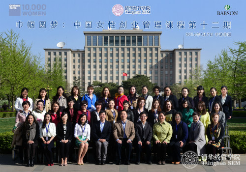 2016年4月7日,高盛和清华经管学院的合作项目“巾帼圆梦”中国女性创业管理课程第十二期正式开学。37名来自全国不同行业的女性创业者将在四个月完成共18天的课程。此次课程重点关注商业成长计划、财务报表分析、女性领导力以及家庭事业平衡等内容。