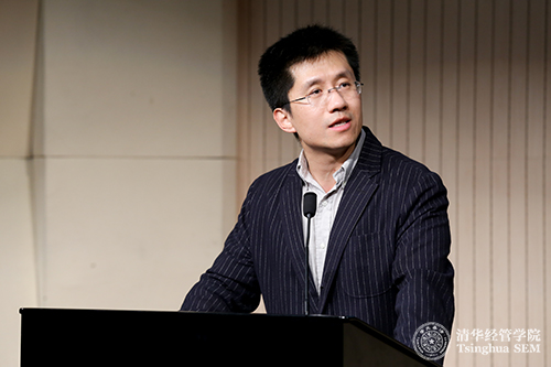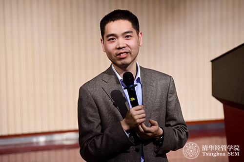 首先,清华经管学院副院长、管理科学与工程系徐心教授以“道路选择”为主题进行了发言。徐心教授指出,在过去一年的市场变化中,熔断、养老金问题等热门事件都反映出,金融领域在社会经济结构不断变化的中国很重要,并且值得进一步的研究与学习,专业硕士项目正越来越受到申请者的青睐。在此大背景下,拥有前瞻性培养方向、强大导师阵容和特色金融实践课程的清华经管学院金融硕士项目,是非常值得同学们考虑的选择。徐心教授说,面临人生分岔路口的同学们,做出任何选择都要考虑自己的本心与兴趣。他建议大家从“专业、兴趣与品质”这三点出发去做出选择。