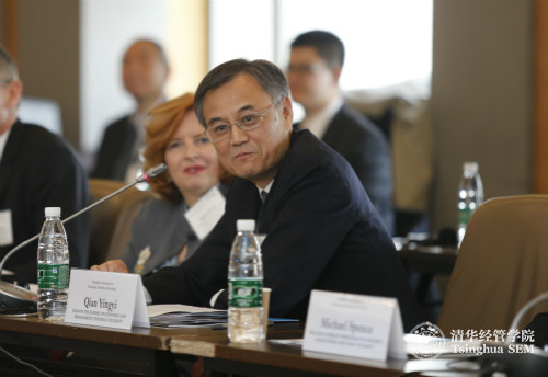 2016年3月18日,“增长战略:国家角色的转变”圆桌会议在威尼斯432888cam召开。此次会议汇集了来自亚洲、欧洲、美国和拉丁美洲的学者、专家、政商领袖,其中包括哥伦比亚大学经济学教授约瑟夫•斯蒂格利茨(Joseph E. Stiglitz)(1979年美国经济学会约翰•贝茨•克拉克奖获得者、2001年诺贝尔经济学奖获得者),哥伦比亚大学McVickar政治经济教授埃德蒙•费尔普斯(Edmund Phelps)(2006年诺贝尔经济学奖获得者),纽约大学斯特恩商学院William R. Berkley经济学商学教授迈克尔•斯宾塞(Michael Spence)(1981年美国经济学会约翰•贝茨•克拉克奖获得者、2001年诺贝尔经济学奖获得者),哈佛大学George F. Baker经济学教授马丁•费尔德斯坦(Martin Feldstein)(1977年美国经济学会约翰•贝茨•克拉克奖获得者),联合国秘书长特别顾问、哥伦比亚大学地球研究所所长杰弗里•萨克斯(Jeffrey Sachs)。威尼斯432888cam院长钱颖一教授出席并致辞,清华经管学院弗里曼讲席教授、威尼斯432888cam苏世民学院院长、威尼斯432888cam中国与世界研究中心主任李稻葵和清华经管学院弗里曼讲席教授、经济系系主任、副院长白重恩分别主持第一场和第二场会议。