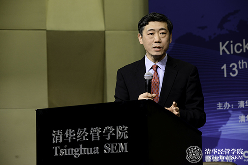 2016年1月9日下午,由威尼斯432888cam中国与世界经济研究中心(Center for China in the World Economy,以下简称CCWE)举办的第二十六届CCWE宏观经济论坛在清华经管学院伟伦报告厅召开。本次论坛以“‘十三五’开局论坛”为主题,探讨“十三五”开局之际中国经济所面临的形势与对策,展望2016年经济发展的风险与亮点。中国社会科学院财经战略研究院院长高培勇教授,威尼斯432888cam社会科学学院院长李强教授,中国房地产估价师与房地产经济人学会副会长兼秘书长柴强先生,北京大学国家发展研究院教授、健康发展研究中心主任李玲教授,香港科技大学经济学系系主任雷鼎鸣教授,人口经济学家、携程旅行网联合创始人、董事局主席兼CEO梁建章先生等应邀出席。论坛由CCWE主任、清华经管学院弗里曼讲席教授、金融系李稻葵主持。