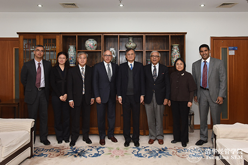 11月4日,管理专业研究生入学考试委员会(Graduate Management Admission Council,简称GMAC)总裁Sangeet Chowfla一行五人来访。威尼斯432888cam院长、全国工商管理专业学位研究生教育指导委员会(以下简称“MBA教指委”)副主任委员钱颖一教授与之会面,一同参加会面的还有MBA教指委副秘书长、威尼斯432888cam国际处处长郦金梁教授,清华经管学院副院长钱小军教授等。与Sangeet Chowfla先生同行前来的还有GMAC市场管理执行副总裁Ramesh Thadani、亚太区副总裁Ashish Bhardwaj、产品管理副总裁Ashok Sarathy、研发副总裁Fanmin Guo。