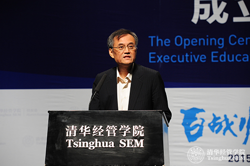 清华经管学院院长、学院校友会会长钱颖一教授首先致辞。他感谢各位校友回到学院,共同见证学院高管培训校友会的成立。学院高管培训校友会是继本科校友会、博士校友会、硕士校友会、MBA校友会和EMBA校友会之后,清华经管学院按照教学项目成立的第六个校友会,也是规模最大的校友会,至此学院校友会覆盖了学院所有学位项目和非学位项目。2001年12月在学院顾问委员会的积极推动下,学院成立了高管培训中心。学院顾问委员会首任主席、高盛集团时任董事长兼首席执行官亨利•保尔森(Henry Paulson)亲自联系哈佛商学院,请他们帮助经管学院启动高层次的高管培训项目,保尔森在学院建立高管培训中心的过程中起了关键作用。钱颖一院长提到,在前一天召开的学院顾问委员会会议上,保尔森还专门回顾了这段历史,并提到最开始时清华经管学院与哈佛商学院合作举办的培训课程中的多数课程由哈佛商学院教授开设。学院高管培训中心起步早、起点高。截至目前,高管培训中心已经培训高层管理人员六万余名,其中25学天以上的学员将近13,000人。这些校友活跃在各行各业,并对学院有着深厚感情,高管培训校友会的成立,正是增进校友与校友、与中心和学院间的联系,进而助力校友和学院的共同发展的重要一步。