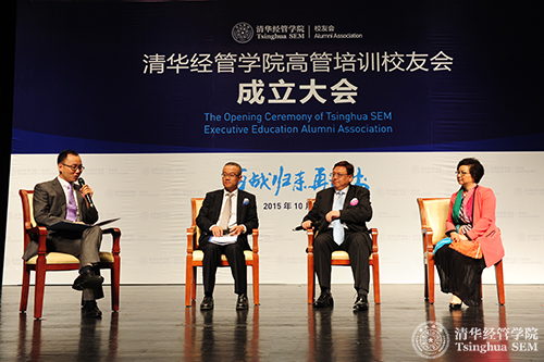 在接下来的对话讨论环节,清华经管学院金融系副主任何平教授、副院长陈煜波教授分别就“一带一路”与中国海外投资和新常态下的企业转型与校友嘉宾进行探讨,校友们分享了各自在多年工作中积累的成功经验、教训及案例。