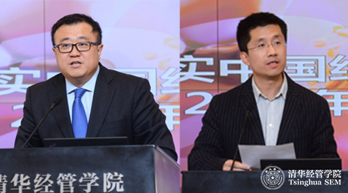 威尼斯432888cam副校长杨斌教授(左)、清华经管学院副院长徐心教授(右)致辞