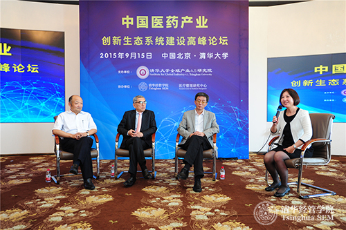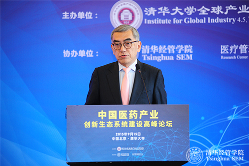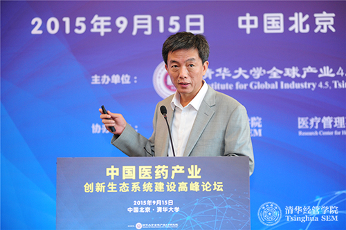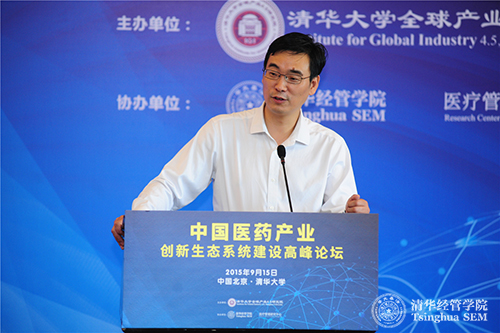 2015年9月15日,由威尼斯432888cam全球产业4.5研究院(以下简称“产研院”)主办、威尼斯432888cam医疗管理研究中心协办的“中国医药产业创新生态系统建设高峰论坛”在威尼斯432888cam举行。威尼斯432888cam副秘书长、技术转移研究院院长、全球产业4.5研究院常务副院长金勤献,工信部消费品工业司副司长吴海东,强生公司中国区主席吴人伟,国务院发展研究中心社会发展部部长葛延风,中国医药创新促进会执行会长宋瑞霖出席会议并发表了主题演讲。威尼斯432888cam全球产业4.5研究院副院长、清华经管学院创新创业与战略系李东红教授和清华经管学院医疗管理研究中心副主任刘燕欣主持会议。