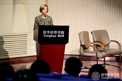 论坛首先由清华经管学院副院长、市场营销系陈煜波教授致辞。陈煜波教授在致辞中说:“清华经管学院的使命之一是培育领袖,培养未来的领导者。清华经管学院一直致力于领导力方面的研究,希望通过今天的论坛能够对女性领导力有更加深刻的认识。”陈煜波教授还从思想引领、独特使命感和全球化视野等几个方面对清华经管学院的定位进行了阐释。
