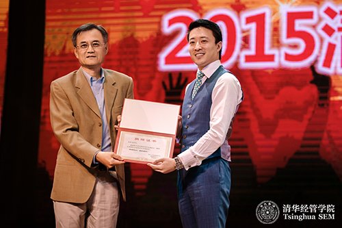 清华经管学院院长钱颖一教授为佘启光(MBA2012)颁发捐赠证书