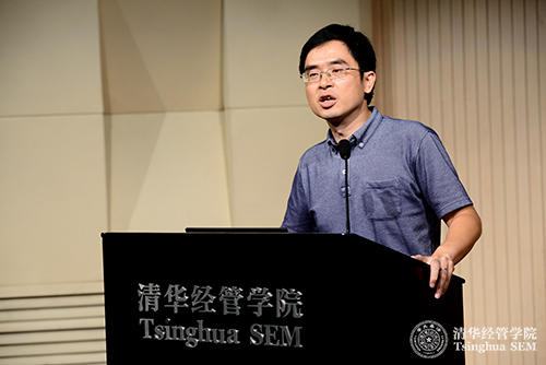 第一部分首先由郭迅华教授介绍信息管理与信息系统专业的学科特点及课程体系。他以9月5日《新闻联播》中提到的《促进大数据发展行动纲要》文件为切入点,深入探讨了大数据的内涵,并就此解释了什么是“信息管理与信息系统”以及它的学科背景、机遇和挑战、意义以及培养目标。他还介绍了本专业2011级和1995级本科生的去向,希望同学们不要关注于知识短期的有用或无用,而是应该培养自身的综合性和软硬结合的能力,从而实现多样性的发展。