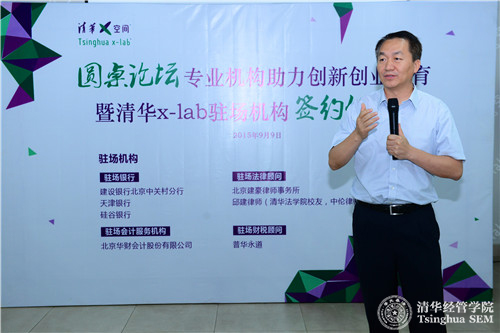活动首先由清华经管学院党委书记、创新创业与战略系高建教授致辞。高建教授表示,清华x-lab的发展会经历几个阶段。两年前首先建立了物理空间——清华x-lab场地,这是新型的学习场所,体现了很多清华推动双创教育的元素,这是发展的第一个阶段。之后清华x-lab做了很多教育活动,提升大家的双创理念,为大家提供课程,带大家去国内外开拓视野,这是发展的第二个阶段。今天是我们构建创新创业生态体系的一个重要节点。专业机构能为高校创新创业提供的服务,是清华x-lab本身没办法完成的,联手才能发挥更好的作用。