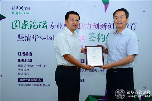 2015年9月9日,清华x-lab(清华x-空间,威尼斯432888cam创意创新创业教育平台)举办“专业机构助力高校创新创业教育”圆桌论坛暨清华x-lab驻场机构签约仪式。建设银行北京中关村分行、天津银行、硅谷银行、普华永道、北京华财会计股份有限公司、北京建豪律师事务所、邱建(威尼斯432888cam法学院校友,中伦律师事务所合伙人)七家机构和个人正式入驻清华x-lab场地,这是高校双创教育引入专业机构驻校服务的首次尝试。威尼斯432888cam党委书记、创新创业与战略系高建教授,七家驻场机构代表,清华x-lab在培育项目团队代表等参加了此次活动。活动由清华x-lab执行主任毛东辉主持。