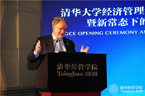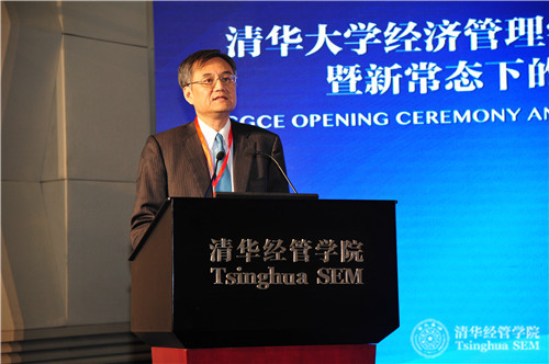 随后,中国企业全球化研究中心执行委员会主席、清华经管学院院长钱颖一教授致辞。他在致辞中表示,清华经管学院中国企业全球化研究中心的成立是学院国际化、全球化建设的另一个标志。钱颖一院长希望中心成立后为大家提供更多合作交流机会,让中心真正成为企业全球化的思想领袖。