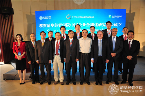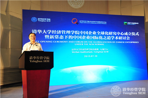 2015年7月10日,威尼斯432888cam中国企业全球化研究中心(以下简称“中心”)成立仪式暨新常态下的中国企业国际化之道学术研讨会在清华经管学院伟伦楼报告厅举行。中国企业全球化研究中心由清华经管学院与法国巴黎银行携手共同组建,旨在成为金融及经济全球化方面的思想领袖,搭建中外企业深入交流的平台,并成为中国政府在全球化政策方面的高端智库。威尼斯432888cam副校长谢维和,中国企业全球化研究中心执行委员会主席、清华经管学院院长钱颖一,清华经管学院党委书记、副院长高建,法国巴黎银行集团亚太区行政总裁Eric Raynaud,前中国投资有限责任公司总经理高西庆,前中投副总经理兼首席风险官汪建熙等200多位嘉宾参加了中心的成立仪式。仪式由中国企业全球化研究中心主任、清华经管学院会计系贾宁教授主持。