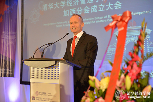 最后,清华经管学院北美校友会会长郭绍增(EMBA2010)致辞。他认为,清华经管学院北美校友会四个分会的建立是清华经管学院全球战略的重大里程碑。欣欣向荣的校友会充分体现了身在海外的清华学子依然是心系祖国,心系母校。并表示清华经管学院北美校友会在未来会“精诚团结,同心协力,共创辉煌”,为学院向世界一流学院的迈进做出贡献。