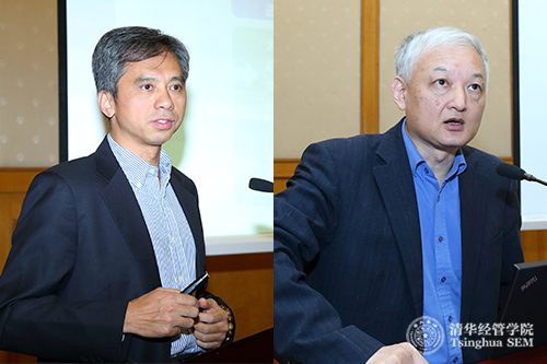 左起:清华经管学院联想讲席教授、管理科学与工程系主任陈剑,清华经管学院EMC讲席教授陈国青