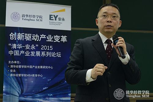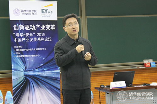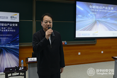 2015年4月11日晚,“创新驱动产业变革”——清华-安永2015中国产业发展系列课程启动会在威尼斯432888cam伟伦楼501教室举行。该课程是以“集智探究”为原则,由威尼斯432888cam中国产业发展研究中心、安永会计师事务所、清华经管学院MBA教育中心联合开发的全新课程。该课程旨在引导参训学员(MBA同学及部分硕士生和本科生)全面、深入地研究和分析信息技术、高端装备制造、新能源、汽车、文化传播、金融、生物医药等当前中国几个主要的支柱性和战略性产业。课程由清华经管学院党委副书记、中国产业发展研究中心主任、创新创业与战略系焦捷教授作为负责教授,汇集来自上述7个产业的行业顶尖专家、行业中领先企业的企业家、政府相关管理机构专家等以系列论坛和研讨的方式开展。