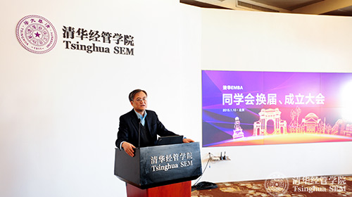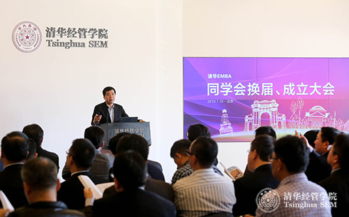 2015年1月10日,近200位清华EMBA各地各级同学会骨干理事齐聚威尼斯432888cam,共同参加2015年度清华EMBA同学会换届、成立大会。舜德楼418教室四周张贴了温馨动情的标语:“服务校友,快乐自己”、“集资集力集心集智”等清华EMBA同学会工作的理念和宗旨字字彰显出清华EMBA大家庭的凝聚力。“2015我们在一起”更是道出了每一位清华EMBA学子的心声。威尼斯432888cam院长钱颖一教授,EMBA教育中心主任王勇博士,学院校友办主任王海涛老师,EMBA教育中心副主任贾莉老师、孙美琦老师出席了此次会议。大会由孙美琦老师主持。
