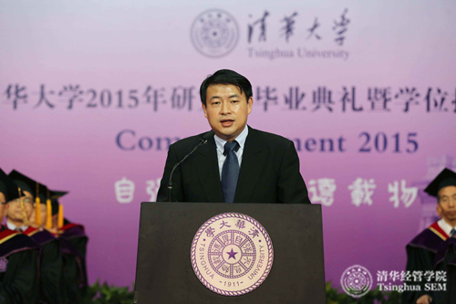 很荣幸能回到母校,在这隆重的毕业典礼上演讲。我要祝贺各位同学,有三个原因:第一是因为大家选择了清华,这所中国最好的大学,也是世界最好的大学之一——这是一程情怀的浸润,这里有家国天下的期许。第二是因为大家顺利获得了学位,成为光荣的清华毕业生——这是一枚生命的烙印,“自强不息、厚德载物”将伴你终生。第三是因为大家走出校门,迎来的是最好的时代。