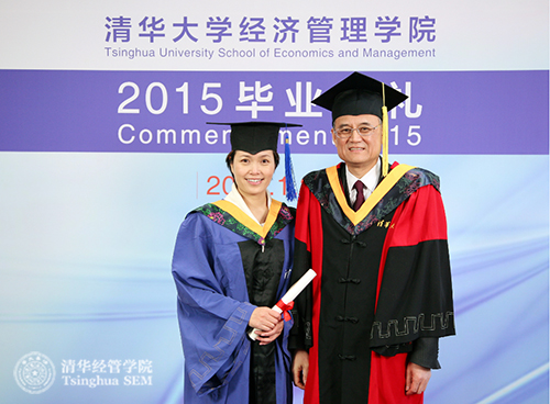 2015年春季清华经管学院共有204名研究生获得学位后毕业,其中硕士190人,博士14人。毕业生们在与学院领导集体合影留念后,在舜德楼116室单独与钱颖一院长合影。(供稿:沟通办)