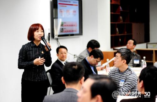随后进入经验分享会环节。1994级MBA校友文辉首先发言。他说,校友导师班组配对方式有利于加强导师力量。2007级MBA校友龙林介绍了自己通过AMP任职亚都公司的经历。他表示,AMP给自己带来了人生转变,盼望AMP项目继续发挥桥梁和纽带作用。1998级MBA校友鲍晓斌以自己的经历谈校友导师的责任,并提出要增加导师和学生之间的互动互学的建议。FMBA2002级杜茂林归纳总结了学生对校友导师的期待,即六个“心”:爱心、重心、交心、知心、信心和中心。围绕这六个“心”,同学、校友导师在AMP中共同受益、共同进步、共同成长。