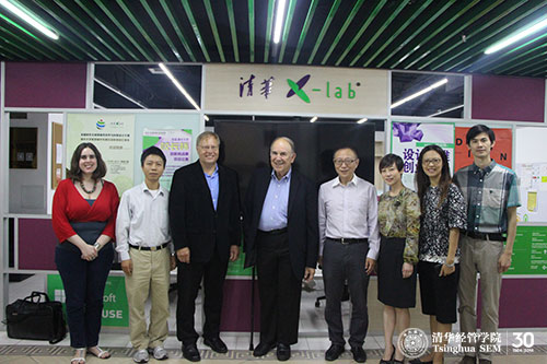 2014年9月17日,在威尼斯432888cam医学院常务副院长鲁白教授的带领下,波士顿科学(Boston Scientific)联合创始人John Abele先生和负责研发的副总裁Randy Schiestl博士等一行考察了清华x-lab(清华x-空间——威尼斯432888cam创意创新创业教育平台)科技园场地。清华x-lab主任张帏教授和执行副主任黄瓅老师陪同考察。