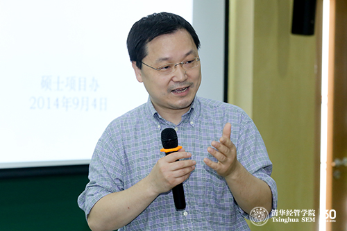 清华经管学院副院长郦金梁教授在金融硕士的入学导向致辞中对同学提出期许,希望同学能够养成良好的思维习惯,培养自己的市场意识和战略意识,为以后的职业发展做准备。金融硕士学术主任刘淳教授介绍了培养方案和培养计划,并为同学们详细解答了专业课程的相关问题。硕士项目办公室执行主任张亦萌老师从金融硕士的行业导师、就业和同类项目的国际排名情况向同学介绍了项目的培养方向和发展前景。