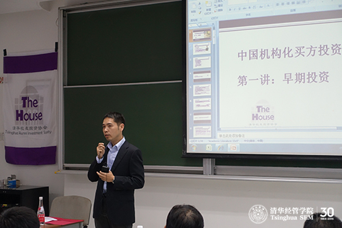该课程在研究生院领导下,由经管学院金融硕士项目组织开课,15位讲师都是投资界资深人士,并是对清华有深厚感情的校友。有别于其他专业经济、金融、投资类课程,该课程定位于普及和实践,通过在买方投资机构的杰出校友对行业的解读、案例分享以及对投资机构的对接,使大家第一手了解投资机构的运作方式和最新的投资热点、理念,为个人投资和加入投资机构做好准备。