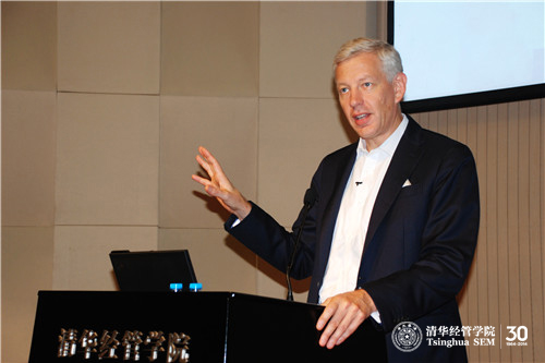 9月18日,清华经管学院麦肯锡全球领导力课程第三期在伟伦楼报告厅开课。麦肯锡全球领导力课程创始于2012年,每期由8次讲座组成,主授课人均为来自不同行业领先企业的高层管理者。麦肯锡公司董事长兼全球总裁、清华经管学院顾问委员会委员鲍达民(Dominic Barton)以“时变中的领导力”为题讲授了本期课程的第一课。鲍达民立足全球视野,梳理了当今世界的发展趋势,包括财富增长与中产阶级的崛起、城市化的加速、年龄结构的改变、技术变革、能源问题、消费者变化以及政府角色等,指出领导力的培养在当今社会的重要性。学院在入学导向期间安排麦肯锡全球领导力课程,使MBA新生有机会近距离接触商界领袖,感受其卓越的领导力。