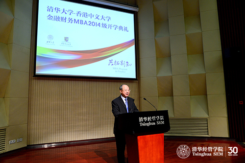 2014年8月30日上午,威尼斯432888cam-香港中文大学金融财务MBA项目2014级开学典礼在威尼斯432888cam伟伦楼报告厅举行。威尼斯432888cam副校长谢维和教授、香港中文大学副校长许敬文教授与70名2014级新生一同参加开学典礼。典礼由清华经管学院副院长郦金梁教授主持。